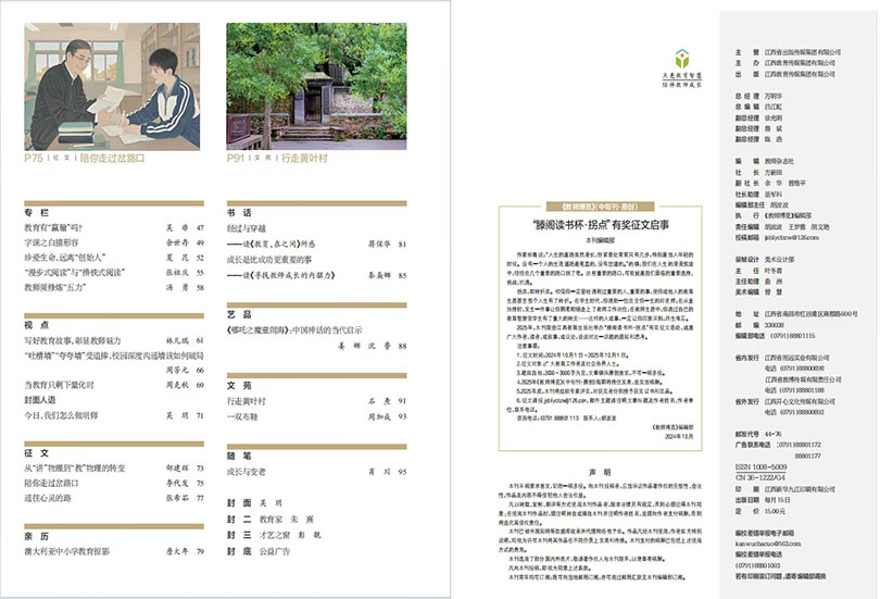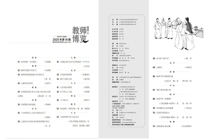 《教师博览》办刊宗旨:为提高教师的全面素质服务,为丰富教师的精神生活服务主张:来自教师,服务教师,发展教师刊物定位:讲述教师自己的故事刊物特点:点亮教育智慧,陪伴教师成长。